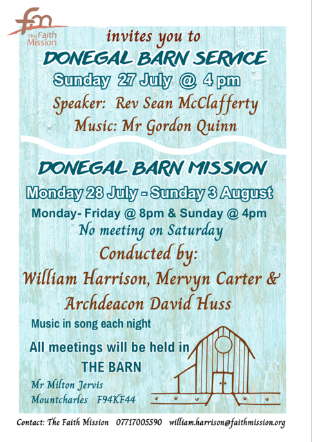 Donegal Barn Mission: Monday 28 July – Sunday 3 August